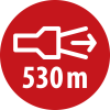 - Hlavní světlo při 100%: 530m / při 33%: 280m / blesk: 250m.