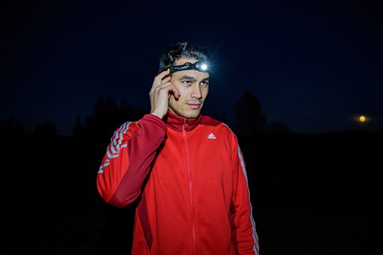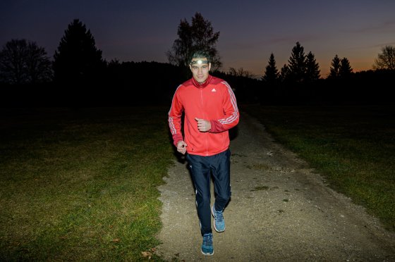LED Kopflampe LuxPremium / leichte CREE LED Stirnlampe mit hellem Frontlicht (ideal zum Joggen, IP44, inkl. Batterien, 60m Leuchtweite, 100lm, Neigungswinkel einstellbar)