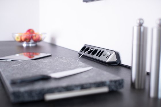 Die kompakte brennenstuhl®estilo Eck-Steckdosenleiste aus hochbruchfestem Kunststoff und hochwertiger Edelstahloberfläche bringt Ihnen Ordnung in Ihr Zuhause. Die universell einsetzbare Steckdosenleiste lässt sich als Küchensteckdosenleiste für Ihre Arbeitsplatte oder als Tischsteckdosenleiste für Ihren Arbeitsplatz durch Spezial-Klebepads leicht anbringen. Die Küchen- oder Tisch-Steckdosenleiste kann sowohl horizontal als auch vertikal angebracht werden. Die Steckdosenleiste verfügt über 4 Schutzkontakt-Steckplätze und 2 Euro-Steckplätze, somit können Sie mehrere Geräte gleichzeitig verwenden. Sie überzeugt außerdem durch folgende Eigenschaften: