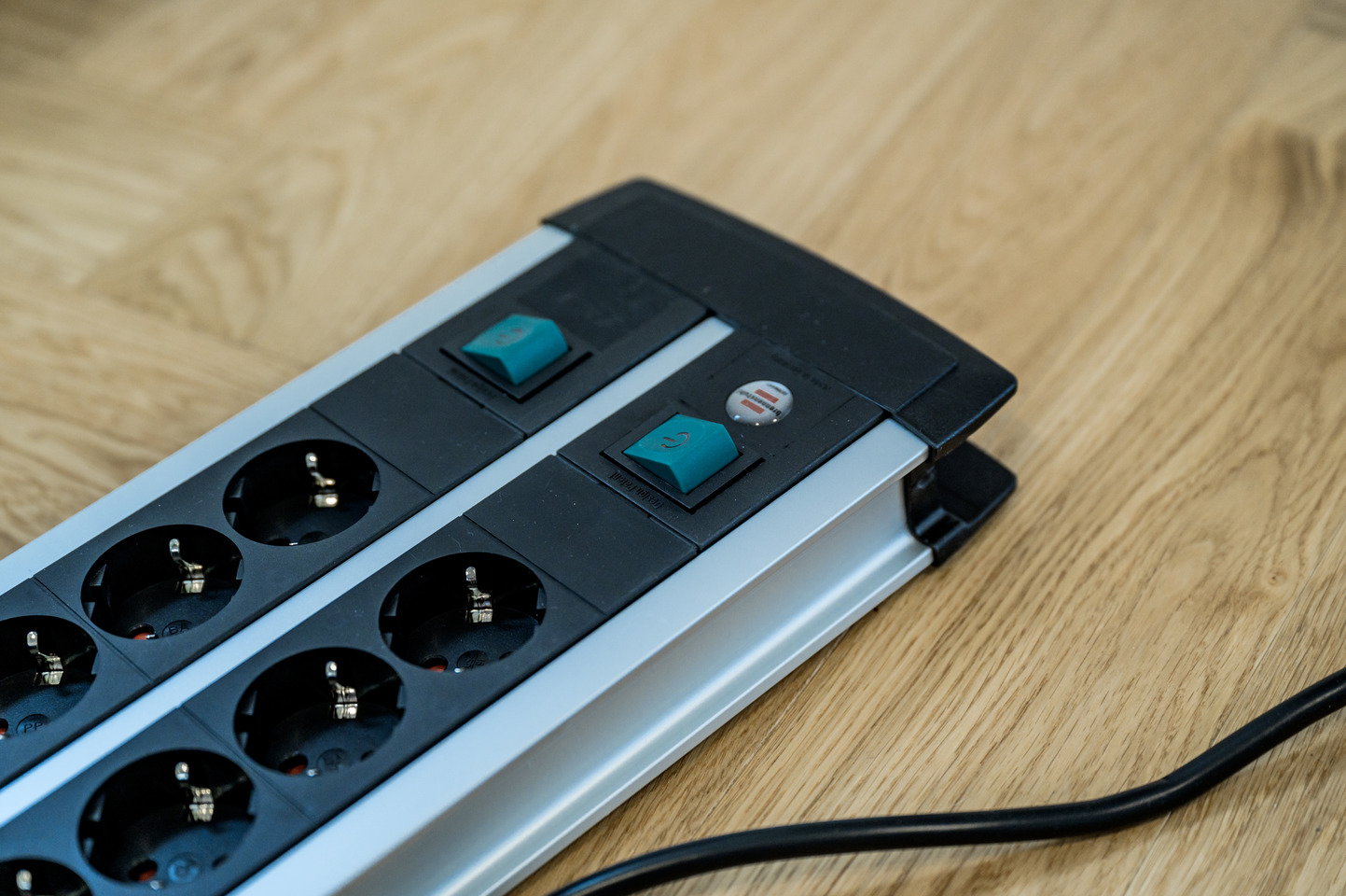 Premium-Alu-Line Steckdosenleiste 12-fach aus hochwertigem Aluminium (mit 2 Schaltern für je 6 Steckdosen und 3m Kabel, Made in Germany)