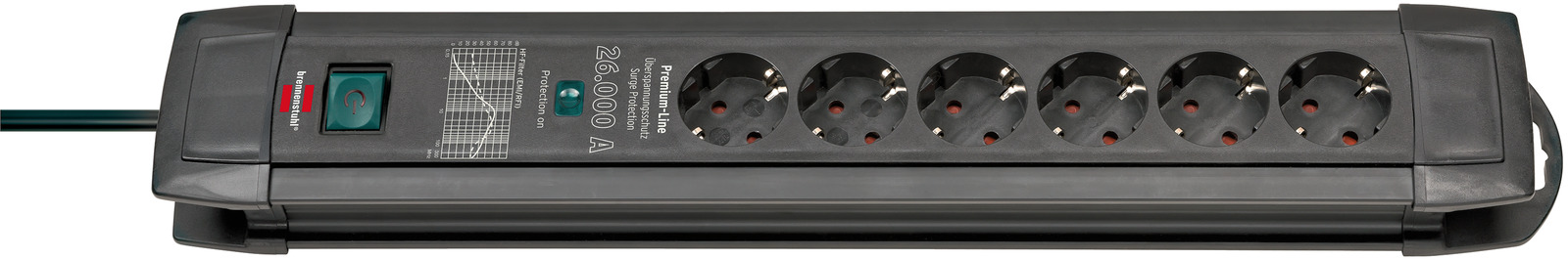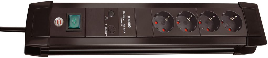 Premium-Line 30.000A Überspannungsschutz-Steckdosenleiste 4-fach schwarz/lichtgrau 1,8m H05VV-F 3G1,5 im Einzelkarton