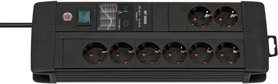 Premium-Line 30.000A Überspannungsschutz-Steckdosenleiste 8-fach Duo schwarz 3m H05VV-F 3G1,5