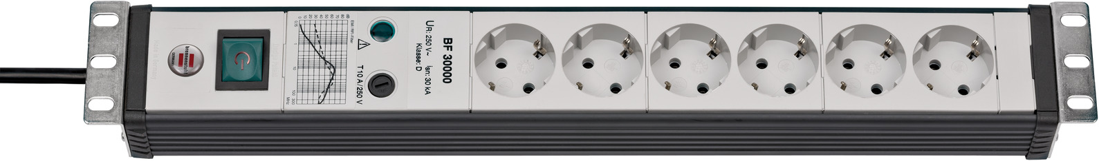 Premium-Line 19" Steckdosenleiste für Schaltschränke 9-fach schwarz/lichtgrau 3m H05VV-F 3G1,5 19"-Format