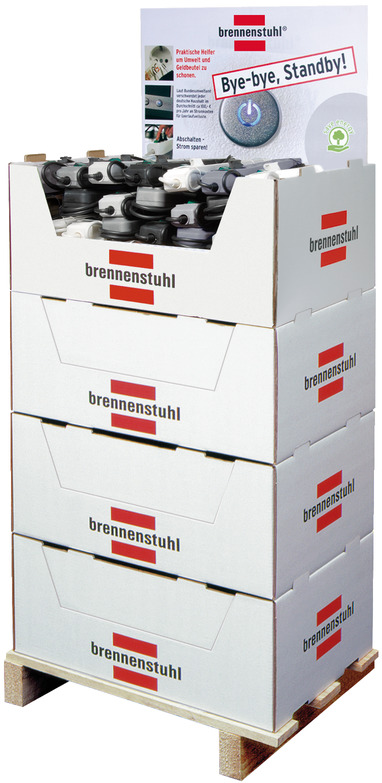 Eco-Line Steckdosenleisten- Sortiment mit Schalter 184x 3-fach-Steckdosenleisten 4 Displays auf kleiner Palette, 60xWeiß, 44xSchwarz, 40xLichtgrau, 40xSilbergrau