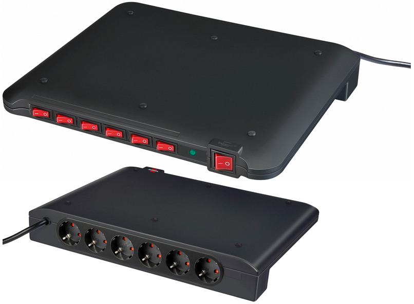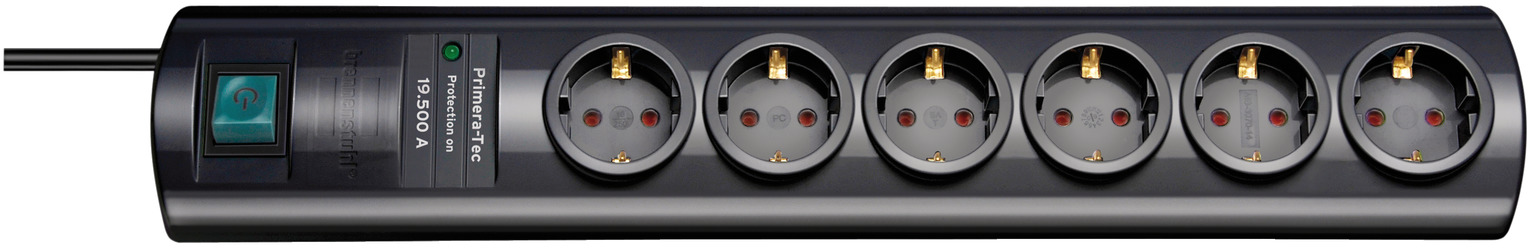Primera-Tec 19.500A Überspannungsschutz-Steckdosenleiste 7-fach schwarz 2m H05VV-F 3G1,5 2 permanent, 5 schaltbar