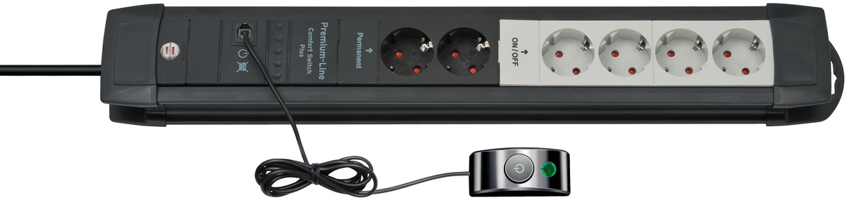 Primera-Tec Comfort Switch Plus 19.500A Überspannungsschutz-Steckdosenleiste 7-fach schwarz 2m H05VV-F 3G1,5 2 permanent, 5 schaltbar