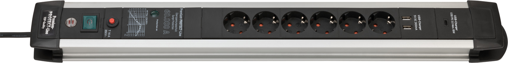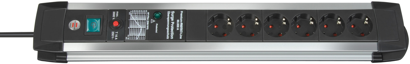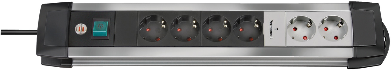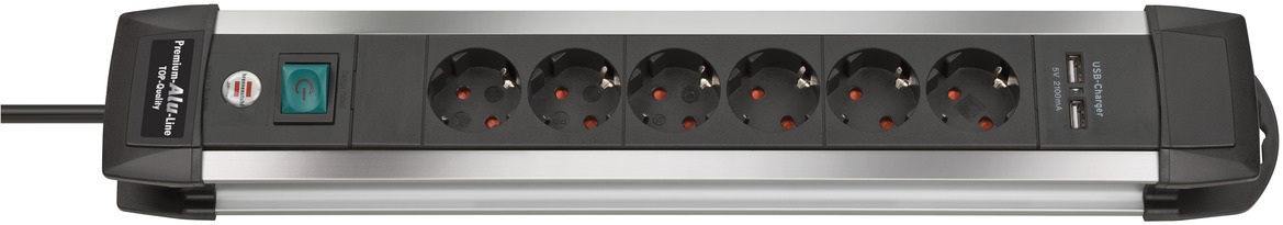 Premium-Alu-Line Steckdosenleiste 6-fach 3m H05VV-F 3G1,5