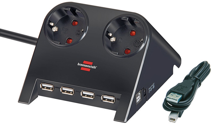Desktop-Power USB-Charger mit 2 USB Ladebuchsen 2100mA 2-fach schwarz poliert 1,8m H05VV-F 3G1,5