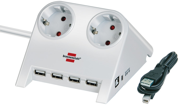 Desktop-Power-Plus mit USB-2.0-Hub mit 5V-Buchse 2-fach silber 1,8m H05VV-F 3G1,5