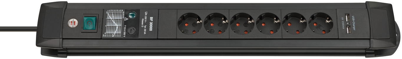Bremounta Steckdosenleiste 6-fach schwarz 3m H05VV-F 3G1,5