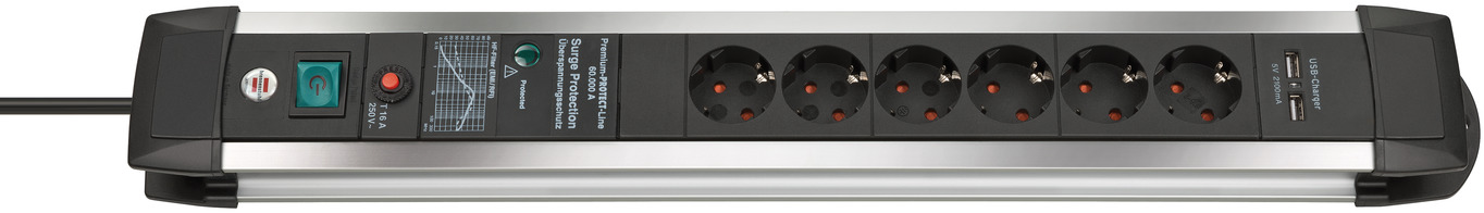 Steckdosenleiste Premium-Protect-Line Duo 11fach MS 120kA ÜSS/Filter, USB, 16A Sicherung