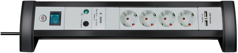 Premium-Office-Line 30.000A Überspannungsschutz-Steckdosenleiste mit USB-Ladefunktion 4-fach 1,8m H05VV-F 3G1,5