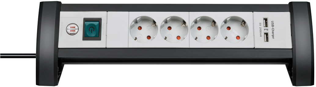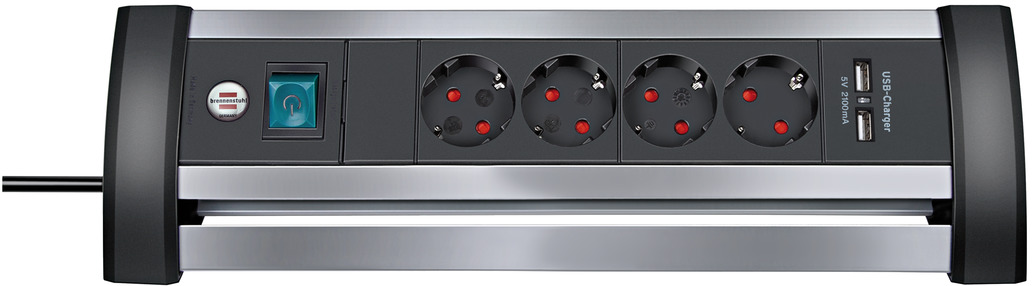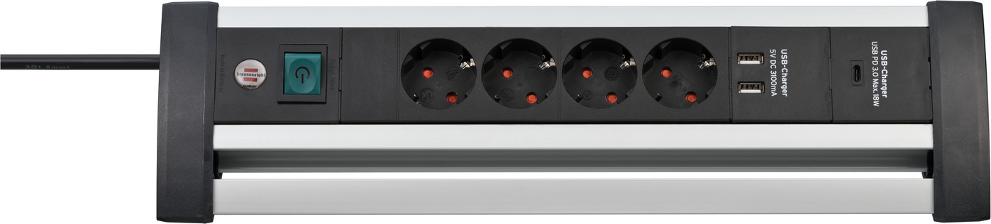 Alu-Office-Line Steckdosenleiste mit USB C Power Delivery USB-Ladefunktion 4-fach 1,8m H05VV-F 3G1,5