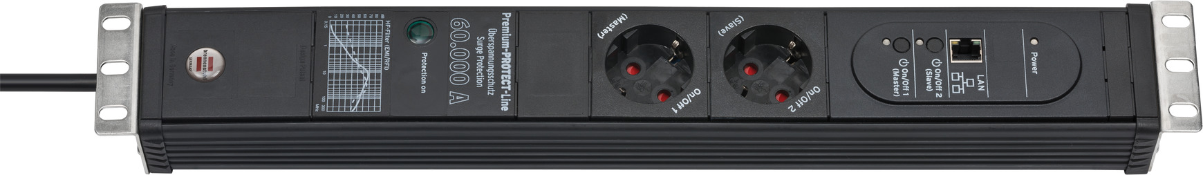 Premium-Protect-Line 120.000A Überspannungsschutz-Automatiksteckdosenleiste 9-fach Duo 3m H05VV-F 3G1,5 RJ11/RJ45/Koax 1xMaster 4xSlave 4xPermanent