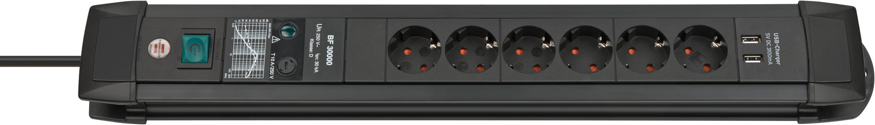 Power Manager PMA USB 19.500A Überspannungsschutz 6-fach, USB-Anschlüsse 4 2m H05VV-F 3G1,5