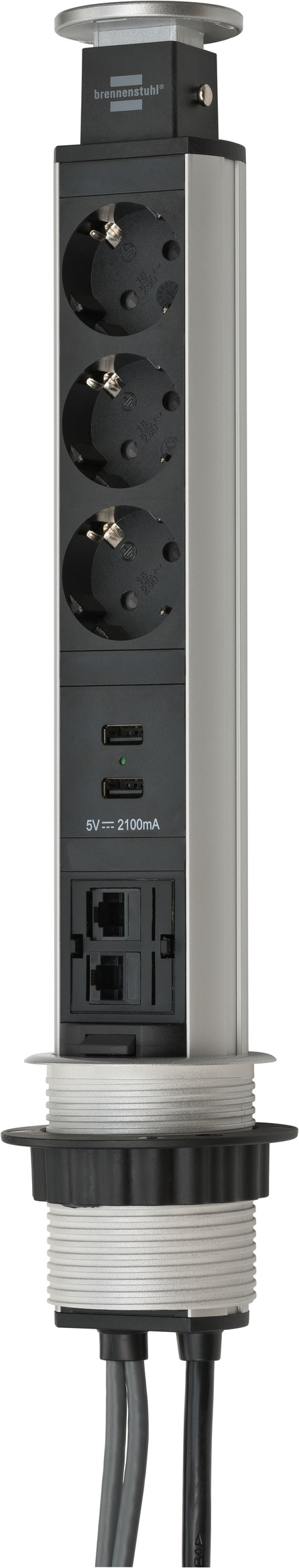 Tower Power USB-Charger und LAN Tischsteckdosenleiste 3-fach 2xLAN-RJ45, 2xUSB, 2m H05VV-F 3G1,5 silber/schwarz
