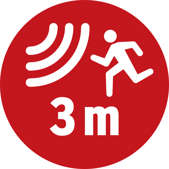 - Max. transmission range frontally: 3 m