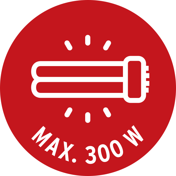 - Maximum power 1,000W (with incandescent bulb) or maximum 300W (with energy saving bulb)