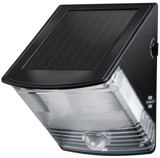 Solar LED wall light SOL 04 plus IP44 with infrared motion sensor from Brennenstuhl is an LED lamp with integrated solar module as well as an infrared motion sensor. The sensor covers an angle of about 100° and a maximum range of 7 meters. It can be operated independently of the power grid and switches on automatically as soon as the detection area is entered. In addition, it convinces with the following features: * 2 super bright LEDs for good orientation light * Wall light switches on automatically for approx. 1 minute when the detection area is entered * Can be operated independently of the power grid * With twilight sensor * All in one housing, no wiring required * Light duration of the solar LED wall light with fully charged battery approx. 80 - 90 minutes * Includes 3 rechargeable and replaceable NiMH Mignon AA batteries * LEDs 2 x 0.5 W * Luminous flux 85 lm
