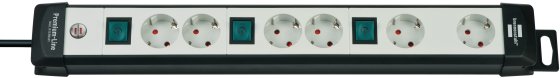 Premium-Line Power Strip 6-way (Extension Lead with 3 switches and 3m cable - 45° angle of the protective contact sockets, mountable, Made in Germany)