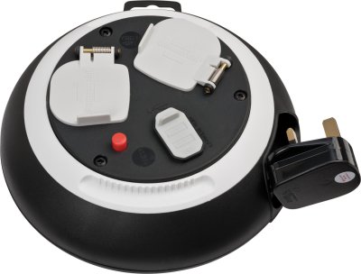 The cable is winded up inside the reel body and thus completely disappears in the box. The cable length varies between 3 and 10 meters. Protection type IP20 (covered) may only be used indoors.