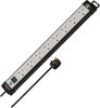 Premium-Line 8-way Brennenstuhl extension cord in black and 3m cable impresses with its quality and safety in all areas. Its stylish, stable casing consists of highly break-proof, polished polycarbonate. It's protected against contact and has the following properties too: * Light indicating surge voltage is active * Illuminated 2-pole switch * Suppresses visual and acoustic interference in TV sets, video recorders and audio systems * Prevents interference to connected equipment * Protects sensitive electronics from high frequency interference voltages * With replaceable 10 A fuse * Three-core arrangement protects phase, neutral and earth leads * Cable: H05VV-F 3G1,25 * Nominal current: 13 A * Plug: 240V, BS 1363Technical data