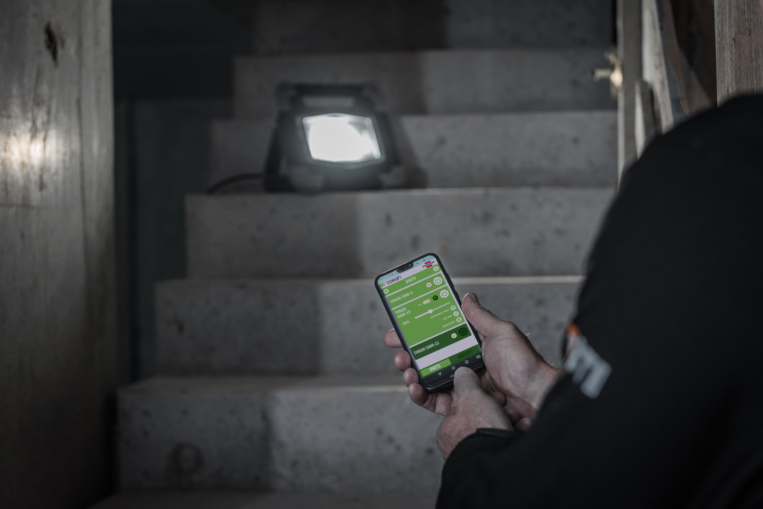 LED Work Light TORAN 30W for indoors andnoutdoors with light control app (LED Site Light with Bluetooth connection to smartphone and app to control light functions, 5m RN-cable, 3400lm, IP55)