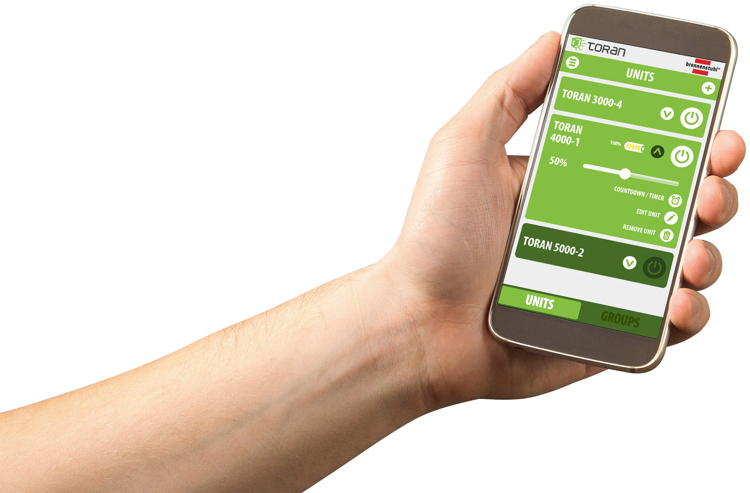 - Bluetooth connection to smartphone and app for controlling the light functions: Light intensity, grouping of up to 5 spotlights, timer
