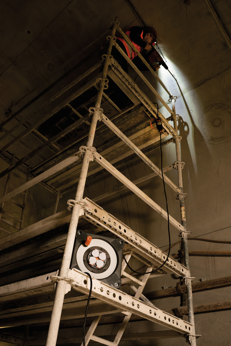 - The body and reel are made of an extremely shock- and impact-resistant plastic and rubber mix. For permanent use in toughest conditions.