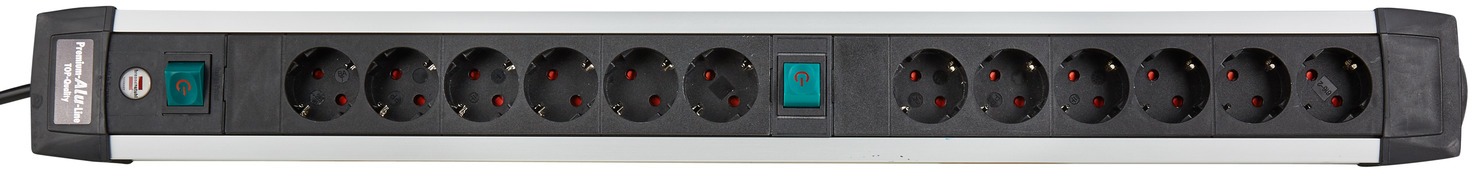 Brennenstuhl Premium-Alu-Line, power strip 12-fold - power strip made of high quality aluminum (with 2 switches and 3m cable, Made in Germany) silver/black