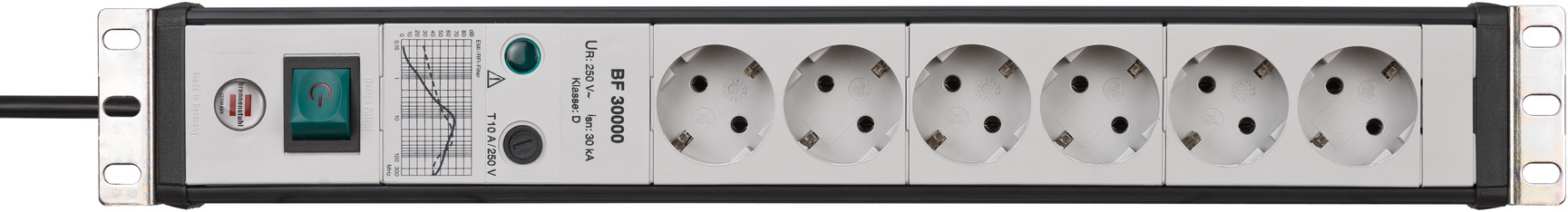 Premium-Line 30.000A extension socket with surge protection 6-way black/light grey 3m H05VV-F 3G1.5 19" format
