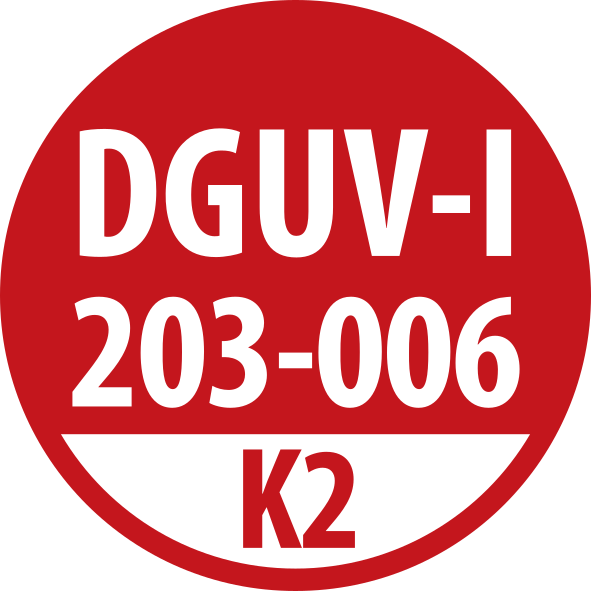- Urzadzenia kategorii 2 (K2 DGUV 203-005): stosowanie w trudnych warunkach pracy, przy duzym obciazeniu mechanicznym, fizycznym i chemicznym
