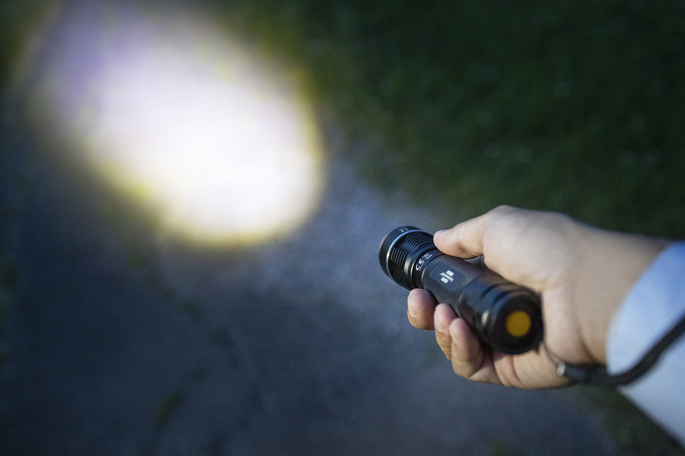 Latarka LED z wysokiej jakości funkcją ogniskowania i dużą mocą świetlną oferuje niezwykle jasne światło dzięki diodom CREE LED, które można wygodnie regulować za pomocą przełącznika z funkcją Soft Touch (100% - 40% - 10% - SOS). Dzięki bezstopniowemu ogniskowaniu, szerokopasmowe światło bliskiego zasięgu może być przekształcone w skupione światło dalekiego zasięgu. Solidna latarka ze zintegrowanym akumulatorem litowo-jonowym (3,7 V/2,6 Ah i zintegrowanym wskaźnikiem ładowania) jest pyło- i wodoszczelna dzięki klasie ochrony IP67 i posiada następujące cechy: