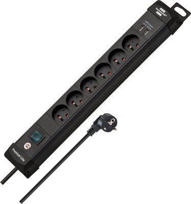 Brennenstuhl Premium-Line listwa zasilająca z 6 gniazdami (listwa zasilająca z wyłącznikiem i kablem 3m - ochronnych gniazd kontaktowych, Made in Germany) czarna