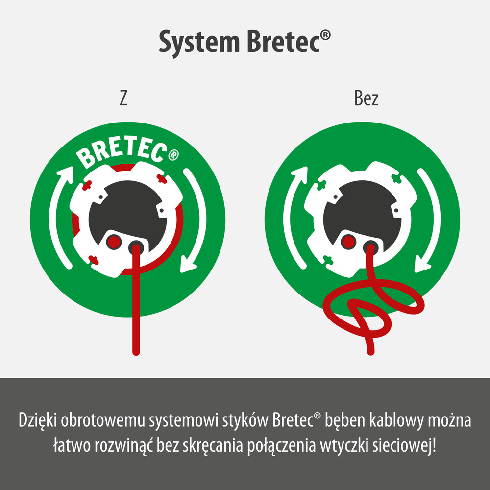 - Pozwala to na rozwijanie kabla nawet wtedy, gdy wtyczka jest podlaczona do punktu zasilania lub gdy podlaczone sa urzadzenia elektryczne, bez skrecania ich kabli